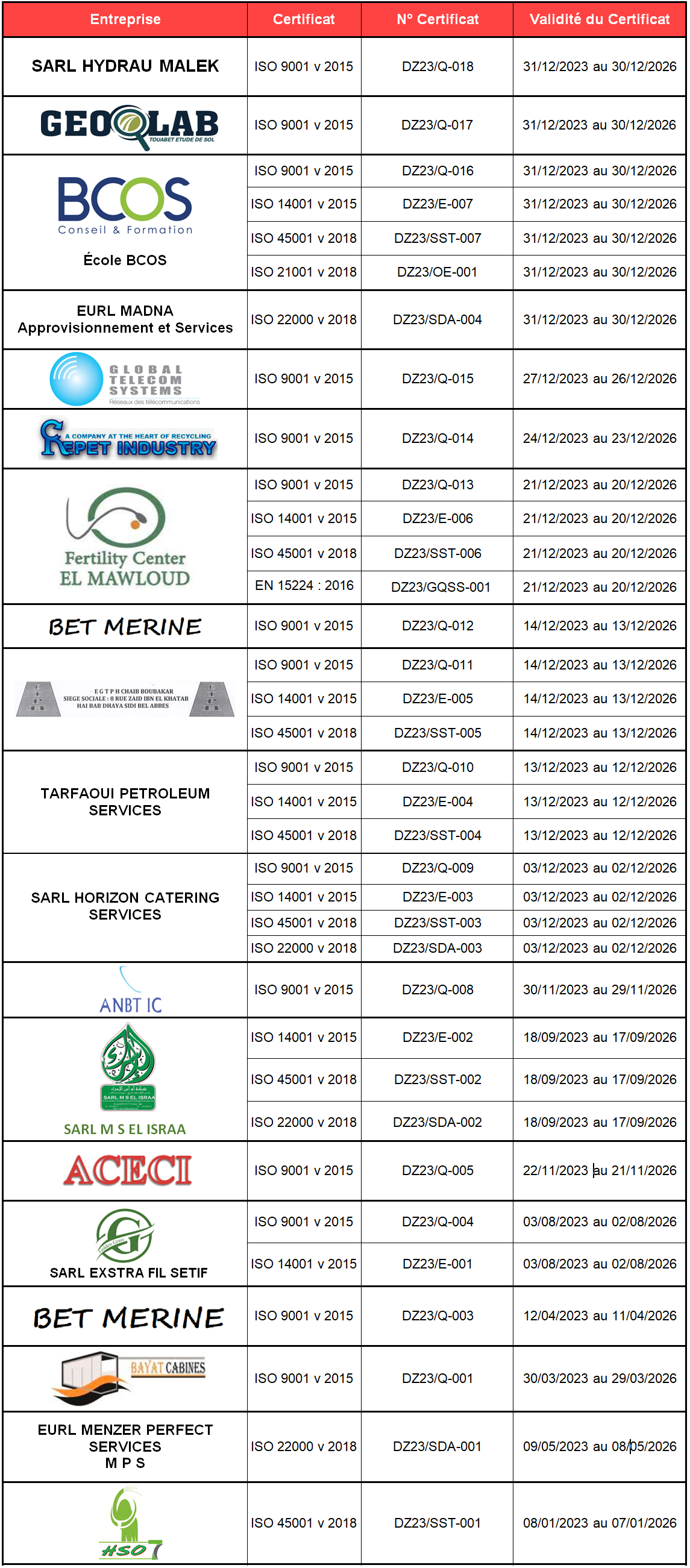 Pour toute information complémentaire relative aux certificats délivrés par ISOCER,