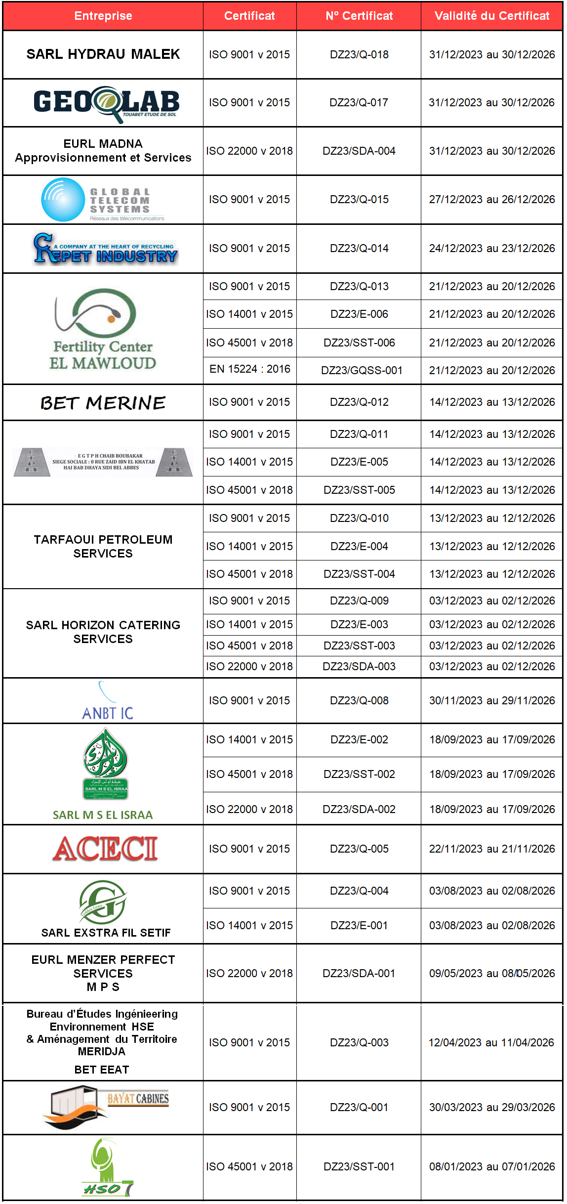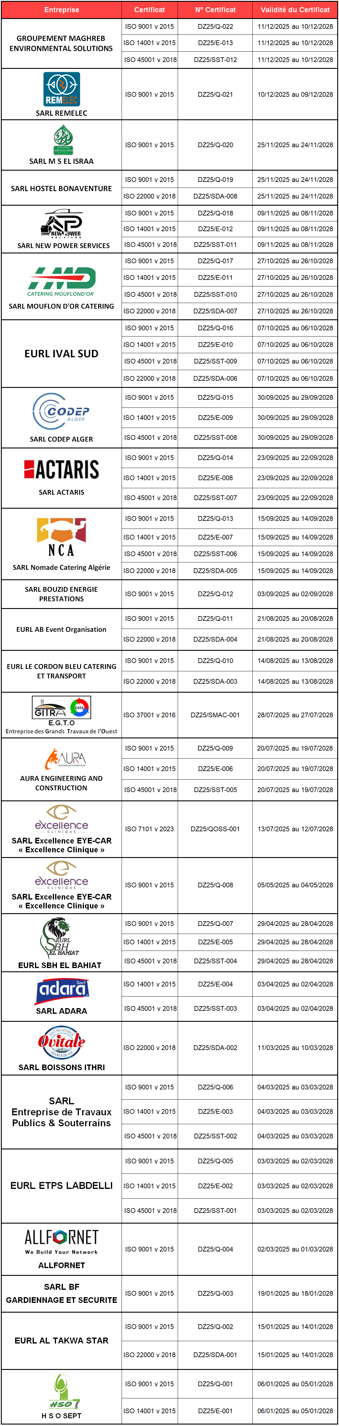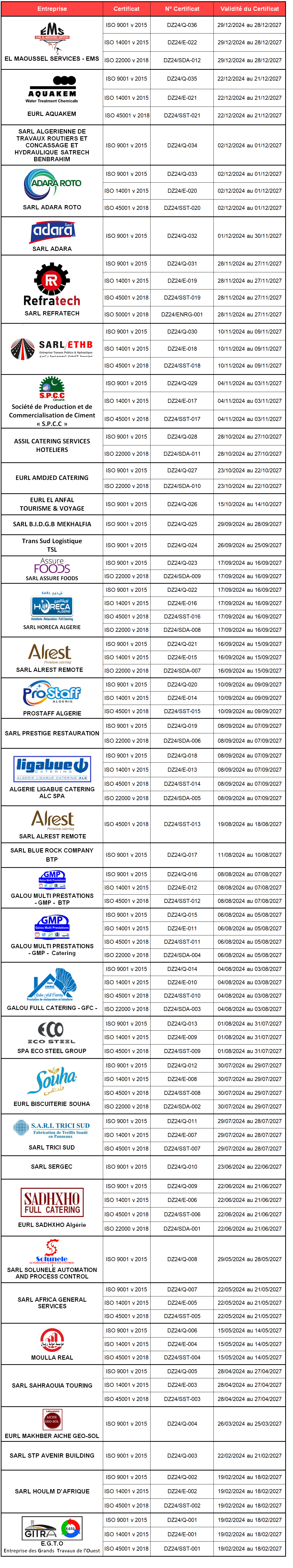 Enregistrement des entreprises certifiées par ISOCER